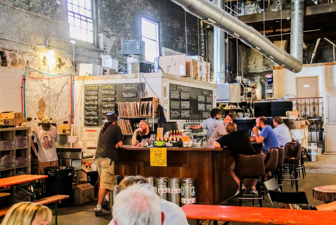 Crafty Bastard Brewery. Worth a visit just for the name and logo alone! There’s outdoor seating and often food trucks.